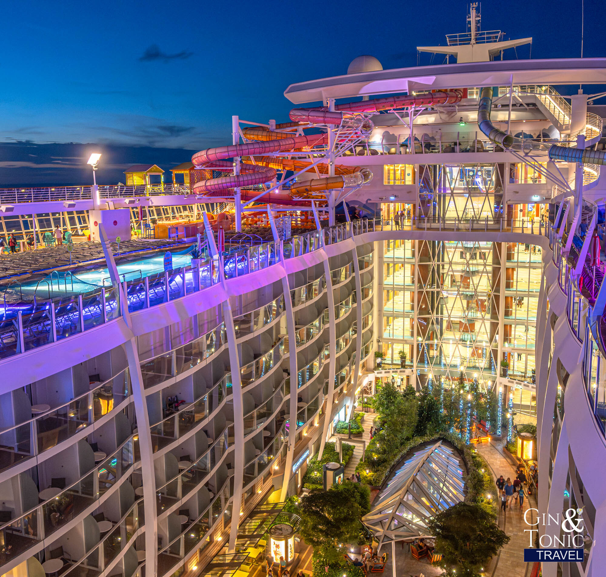 The Oasis of the Seas is renowned for its innovative, game changing design and world-class amenities. The ship features seven distinct neighborhoods, each offering its own unique experiences. Among them is Central Park, a serene oasis that provides a peaceful escape from the excitement and buzz of the ship. Nestled in this tranquil space are lush gardens, winding pathways, and charming cafes, making it an ideal spot for a quiet stroll or a moment of reflection.